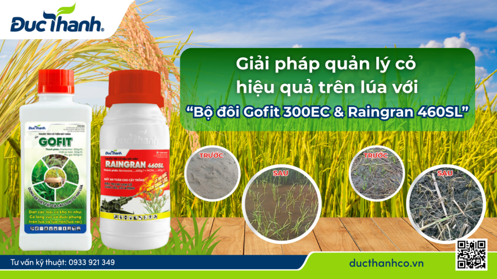 Quản lý cỏ dại trên lúa hiệu quả là chìa khóa để nâng cao năng suất và giảm chi phí sản xuất. Bộ đôi Gofit 300EC và Raingran 460SL chính là giải pháp toàn diện, giúp bà con kiểm soát cỏ từ giai đoạn mầm đến hậu nảy mầm, đặc biệt là nhóm cỏ khó trị như cỏ cháo, cỏ chác, cỏ lác.