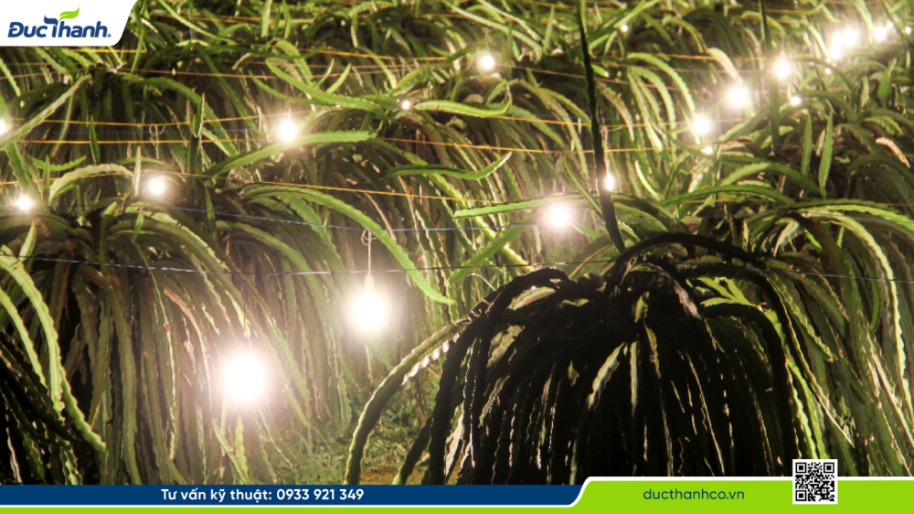 Để xử lý ra hoa nghịch vụ, bà con có thể dùng phương pháp thắp đèn kết hợp phun phân bón lá Đức Thành. Khi ra hoa, nên tỉa bỏ bớt để mỗi cành chỉ giữ 1–2 quả phát triển tốt.