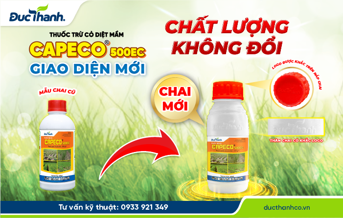 Kể từ ngày 01/05/2025, các lô hàng sản phẩm CAPECO 500EC dung tích 450ml sẽ được thay đổi thiết kế bao bì như sau: